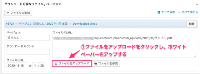 補足ですが、[ファイルをアップロード]から資料をアップロードすると、通常のアップロード先ではなく、保護された「public_html/wp-content/uploads/dlm_uploads」にアップロードされます。