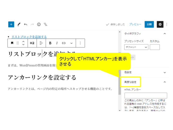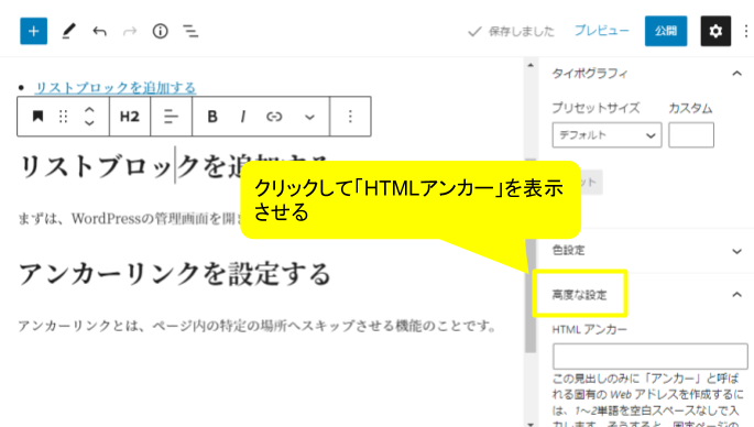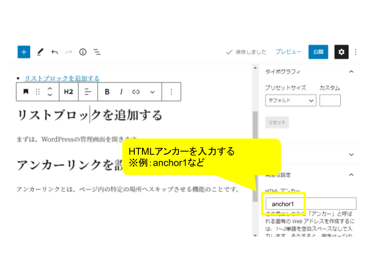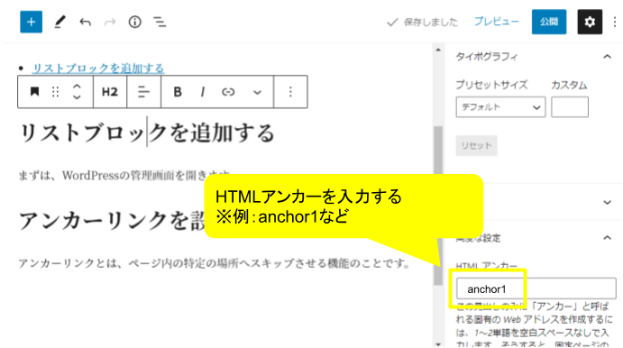 3.「HTMLアンカー」を入力する