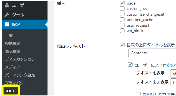 - 「設定>TOC+」