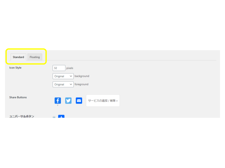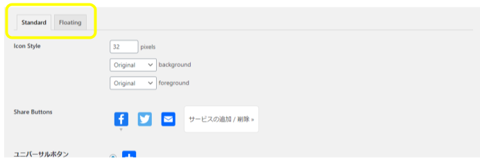 | Share Buttons | 設置したいSNSの選択 |