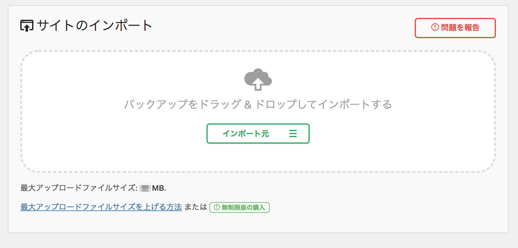 「All-in-One WP Migration」の無料版は、512MBまでのデータしかインポートできません。