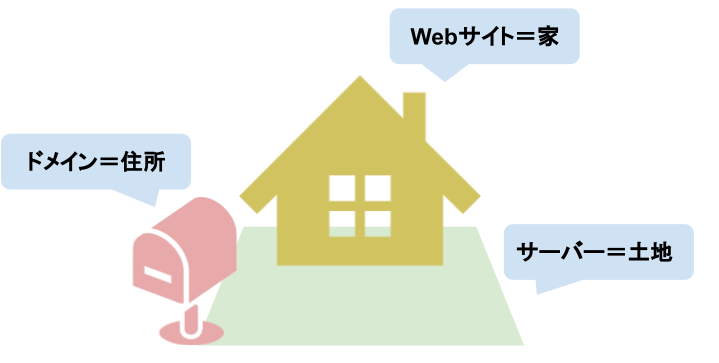 それぞれ簡単に説明すると、サーバーは「インターネット上の土地」、ドメインは「住所」のような存在です。
