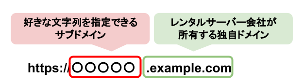 ドメイン取得サービスとレンタルサーバーが違うと設定が面倒なので、初心者の場合はレンタルサーバーが用意する初期ドメインやサブドメインサービスを使うのも良いでしょう。(サブドメイン取得は、レンタルサーバーが所有するドメインの一部を間借りするような状態になる)