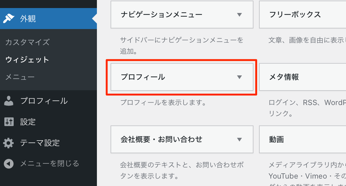 「プロフィール」ウィジェットでサイドバーにプロフィール表示