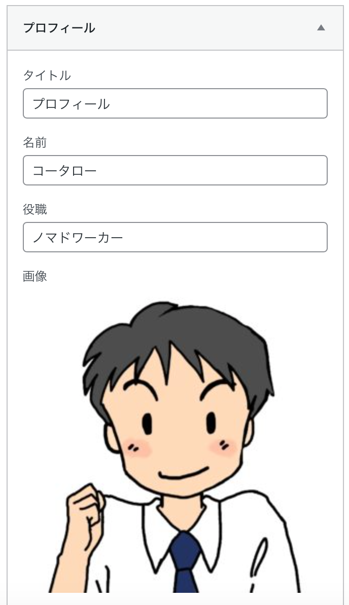 まずは「タイトル」「名前」「役職」を入力し、画像を設定します。