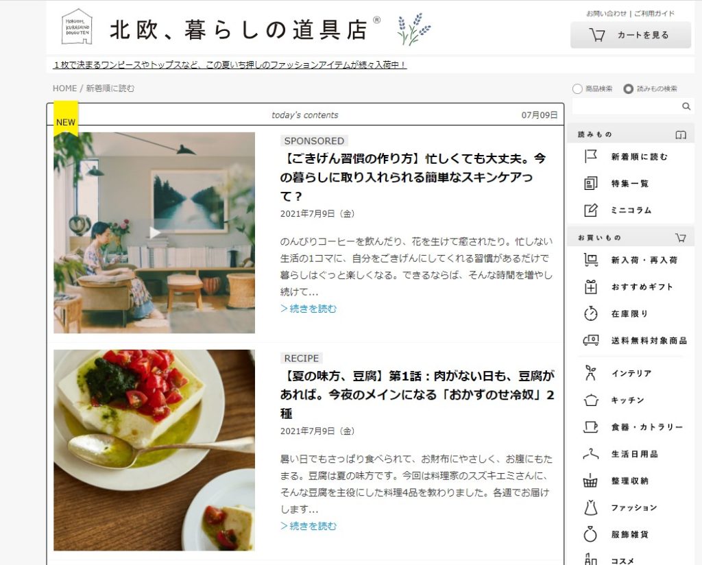 少しで良いので、リンク先『北欧、暮らしの道具店』のホームページのチェックをお願いします。