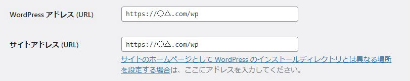 この場合、「サイトアドレス(URL)」が https://◯△.com/wp となっています。しかし、あなたのホームページのアドレスに「wp」がついているのは余分ですよね。