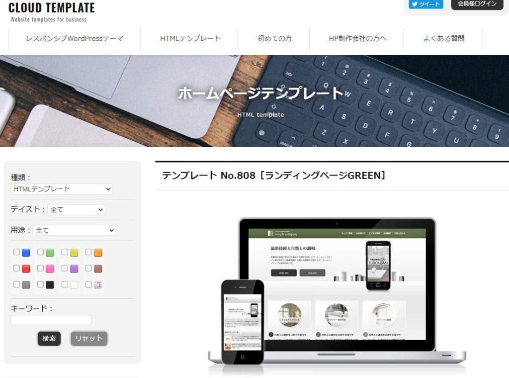 日本語で完成度の高いLP希望!なら「CLOUD TEMPLATE(No.808)」(有料)