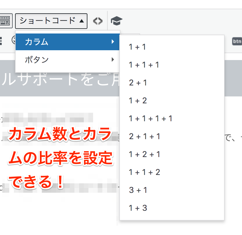 追加属性とは、ショートコードにCSSのクラス名や数字などを追加できるというものです。
