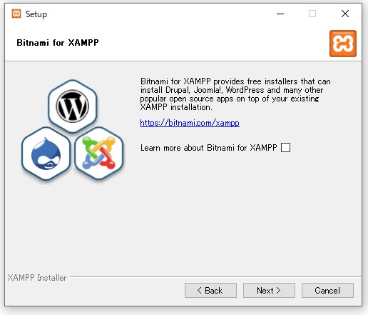 『Bitnami』のインストールが促されますが、必要ありません。