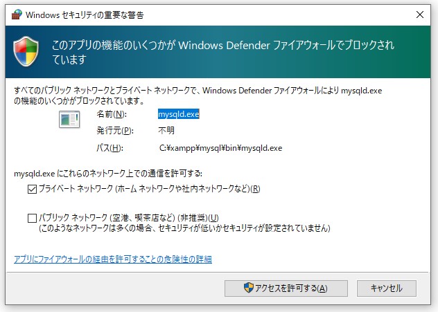 セキュリティの警告が出ますが、何もせずアクセスを許可してください。
