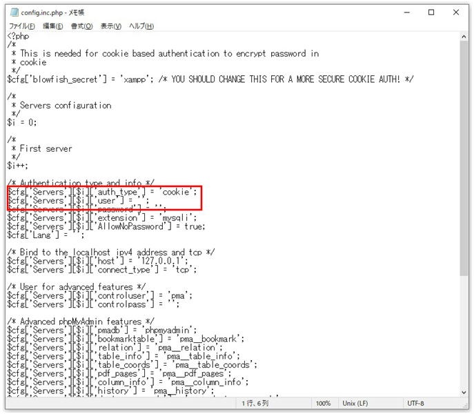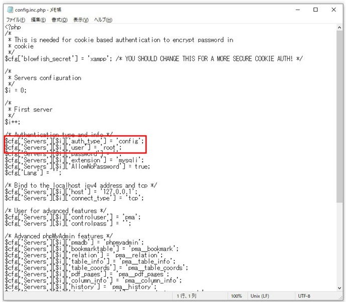 C: > xampp > phpMyAdmin > config.inc.php