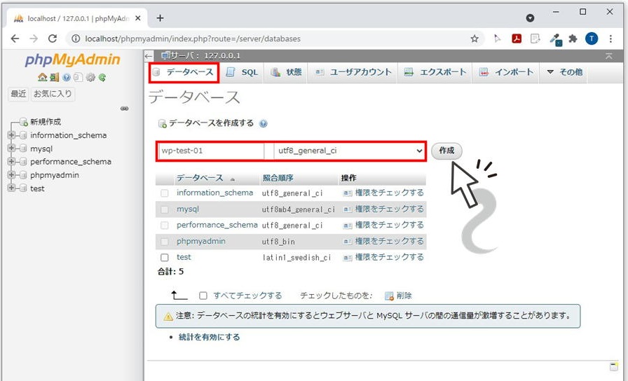 WordPressをインストールするために必要なデータベースを作成します。