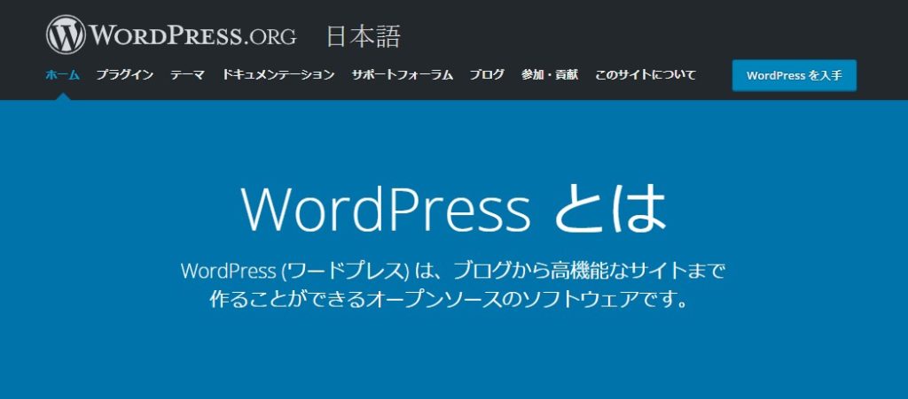 右上の『WordPressを入手』ボタンからダウンロードすることができます。