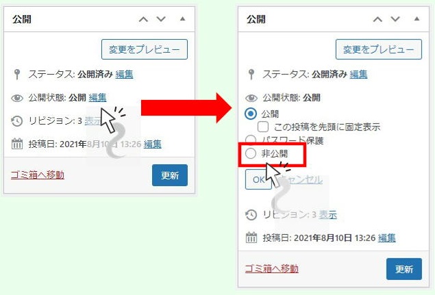 WordPress内の記事を非公開にする方法