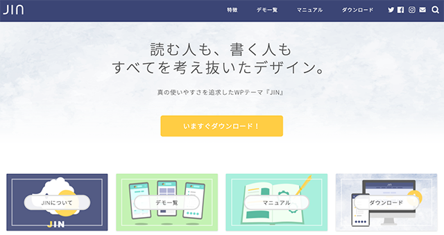 JINは、現役アフィリエイターのひつじさん、WordPressテーマ「ATLAS」の開発者である赤石カズヤさんが共同で開発したテーマです。アフィリエイトに特化したWordPressテーマで、収益化のための以下機能が標準搭載。