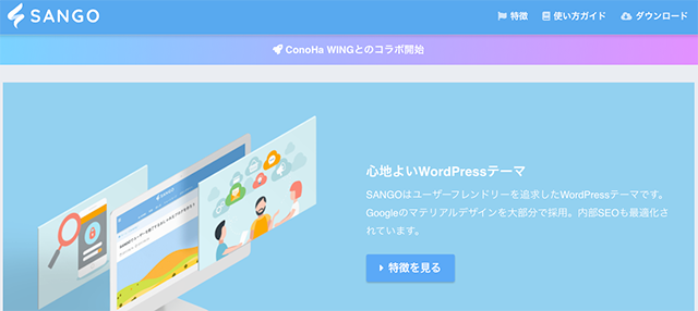 SANGOは、Webメディアから生まれた有料WordPressテーマとなり、居心地の良いデザインを重視しつつもSEO対策に有効な機能が搭載されています。