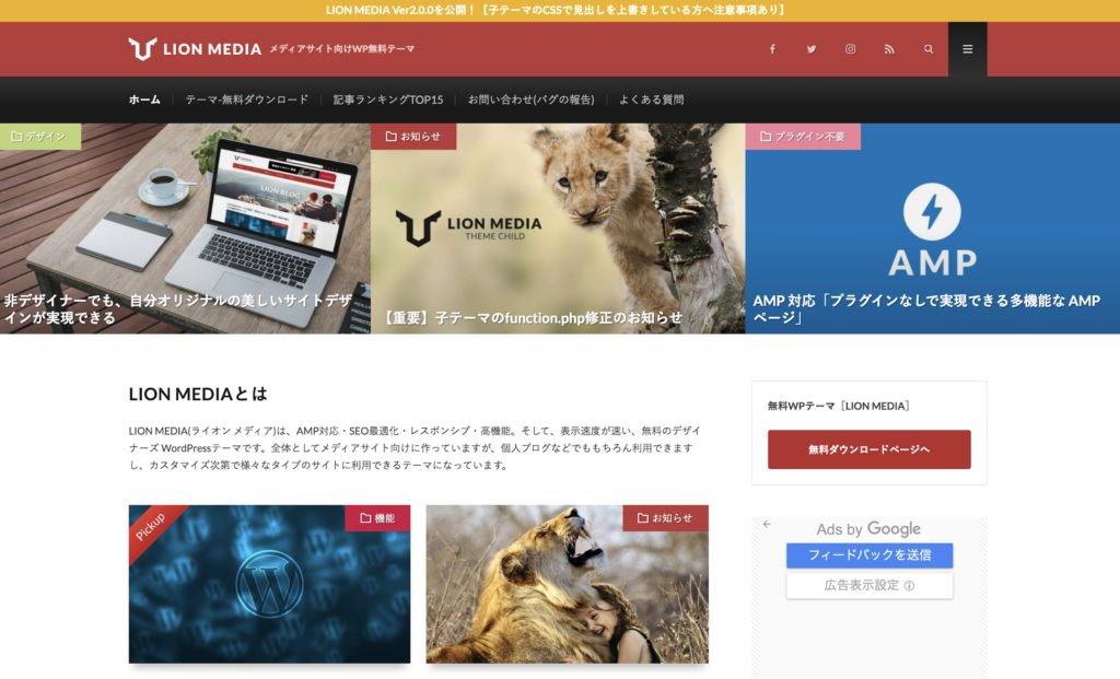LION MEDIA(ライオン メディア)は、SEOコンサルティングに強いFIT社が提供している無料のWordPressテーマです。