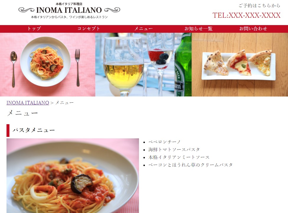 ここまではおおむねビジュアル上のポイントを中心にお話してまいりました。飲食店・レストランのホームページでのメインコンテンツは、文章ではなく画像だからです。