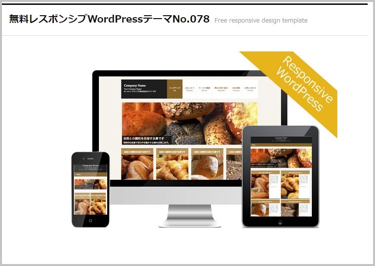 2つめの無料テーマは、多数の無料WordPressテーマ・HTMLテンプレートを提供している「無料ホームページテンプレート.com」のレスポンシブWordPressテーマNo.078。