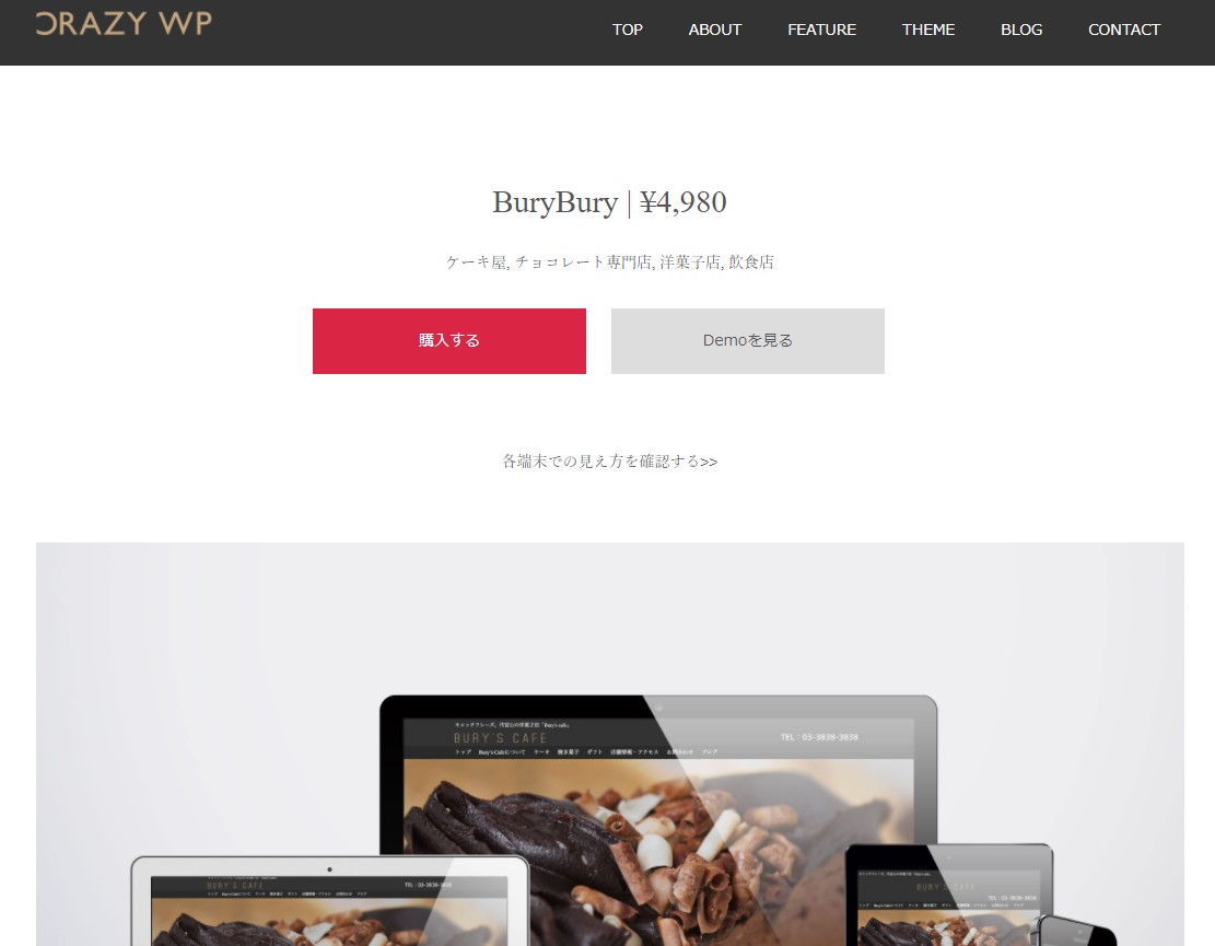 2つめの有料テーマは、業種別WordPressテーマを制作するCRAZY WPの飲食店・レストラン向けテーマになります。