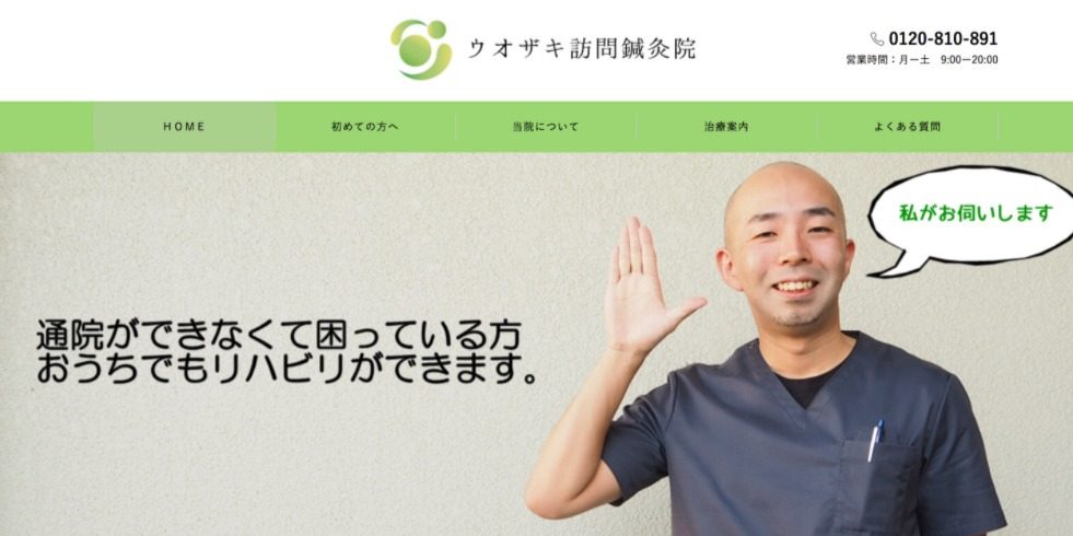 最初は、ウオザキ訪問鍼灸院さまのホームページです。