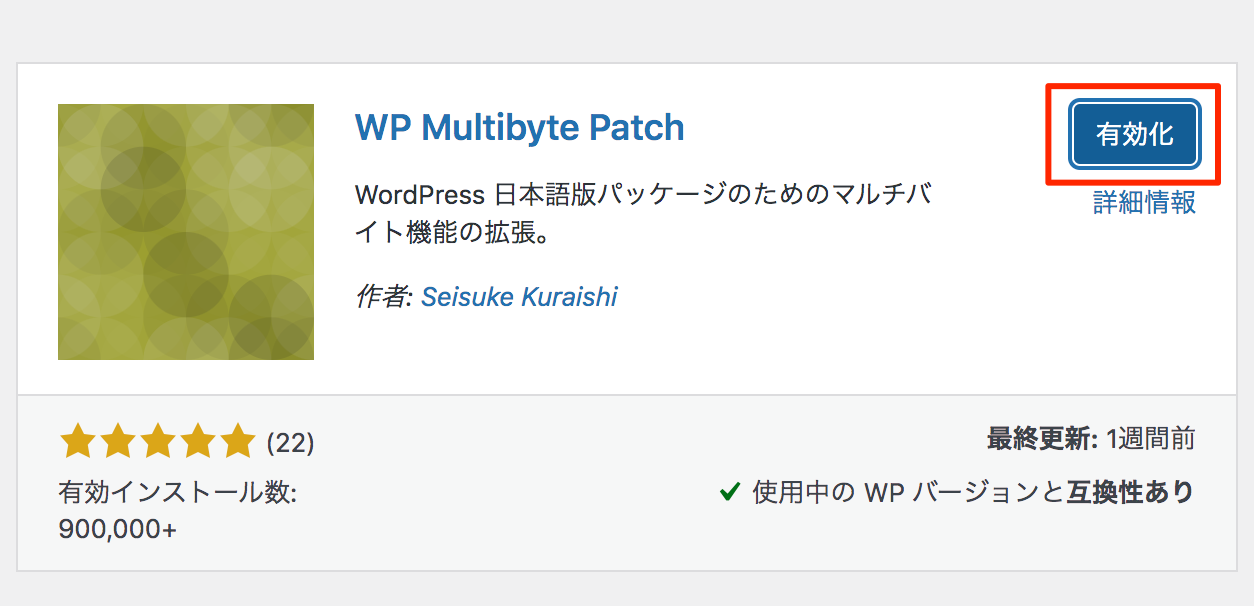 6.「WP Multibyte Patch」プラグインのインストール