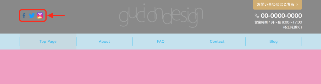 ヘッダーにSNSボタンを表示させる方法です。