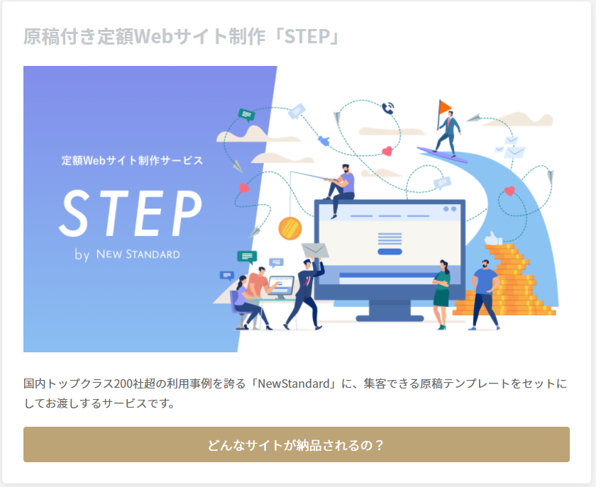 New Standard公式サイトのトップページと同じクオリティ・表現力のものが、自社サイトでも再現出来ます。