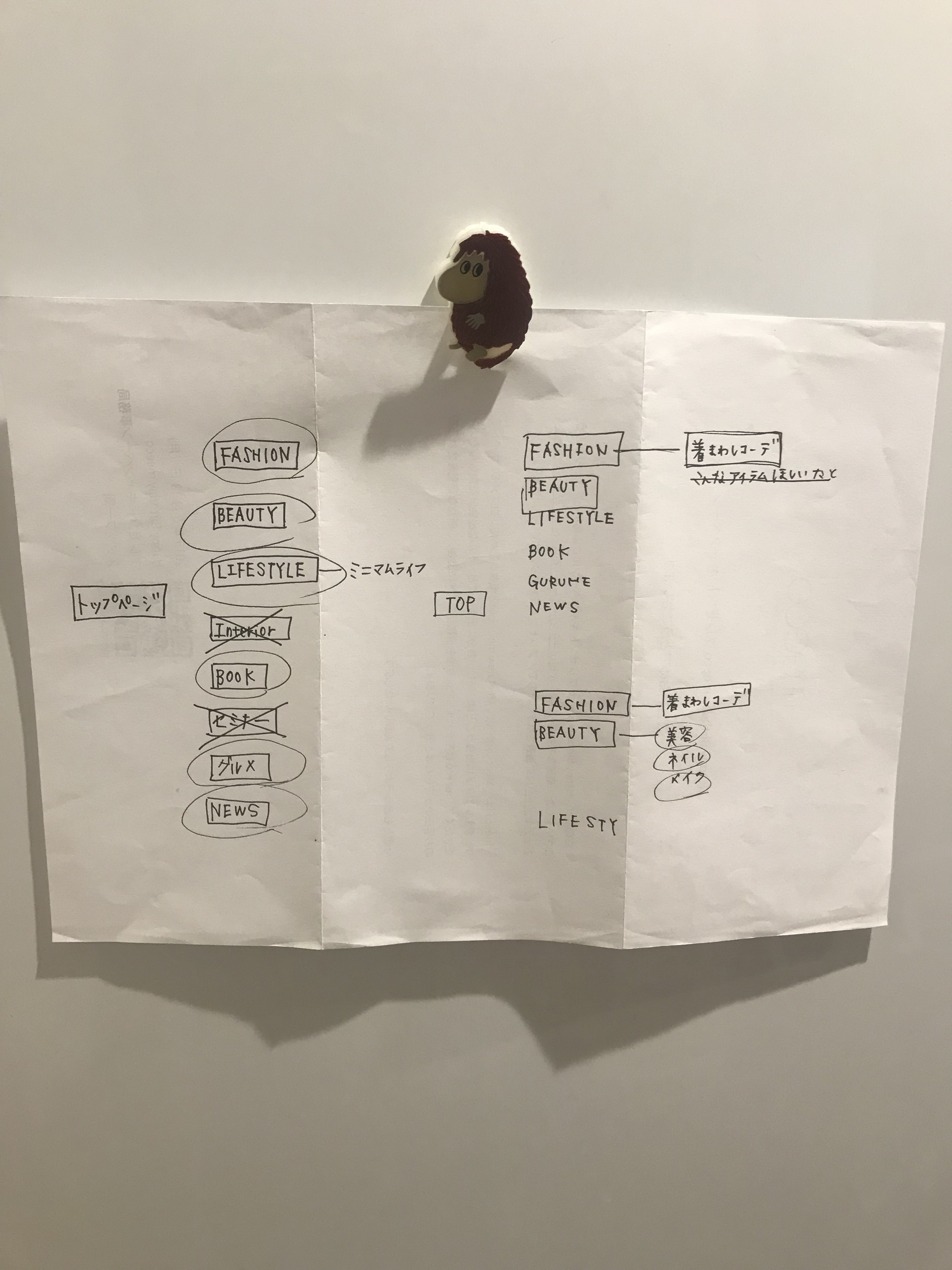 ワイヤーフレーム作りに、一番効果的だったのは、自分が参考にしているサイトのメニューを書き出して比較することでした。(すべてなぐり書きで汚い字ですみません)