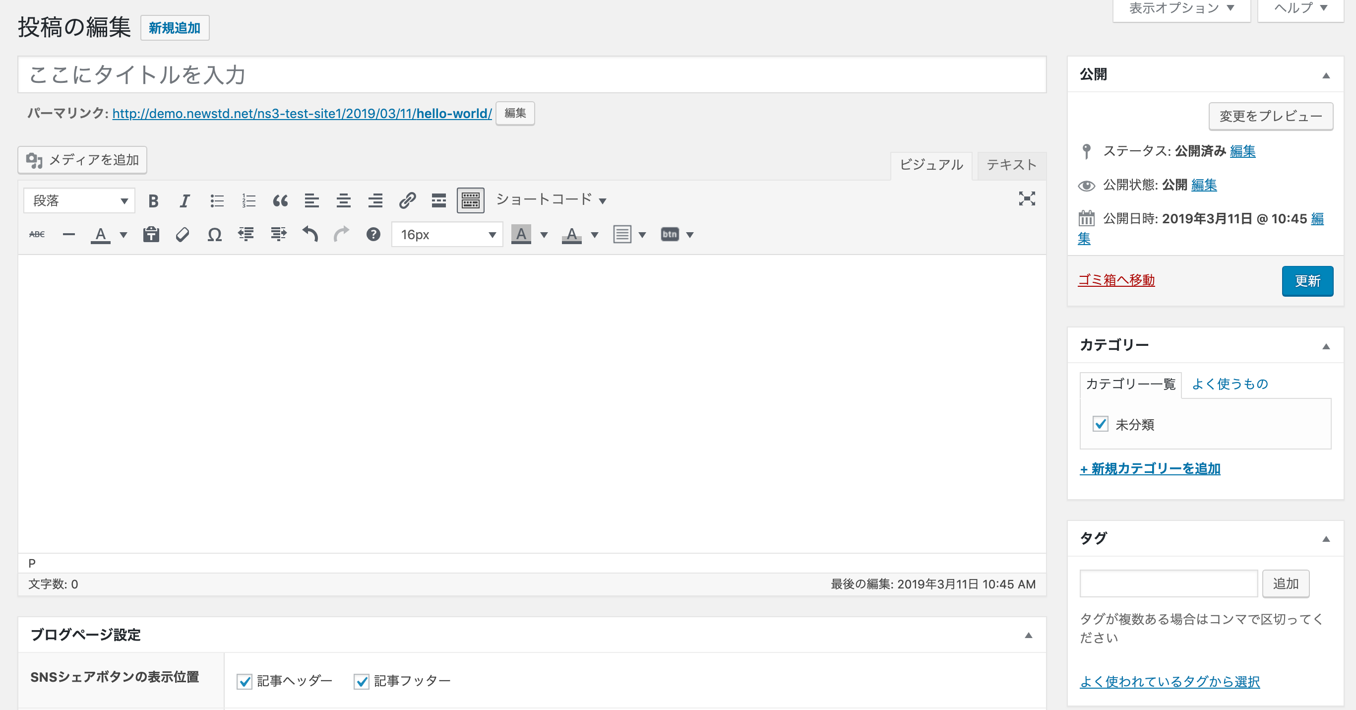 なんとなく、日ごろ見慣れた操作画面でしょうか。各種ブログサービスの編集画面も、このクラシックエディタに近いものです。
