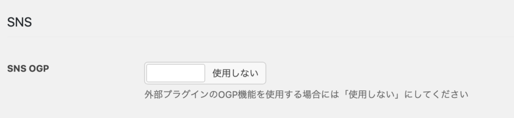 サイト全体に対してNew Standardが持つSNSのOGP制御を適用させるかを選択します。SNS関連のプラグインを使用しない限りは「使用する」を選択しましょう。