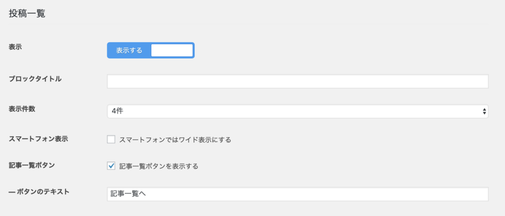 コンテンツの下に任意の投稿を表示できます。「表示する」を選択しましょう。