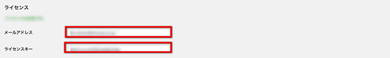 メニューバーのテーマ設定>ライセンスよりライセンス管理画面を開きます。ライセンスキー発行フォームに入力したメールアドレスとライセンスキーを、赤枠の欄にご入力ください。入力後、画面左下の「保存」ボタンをクリックします。