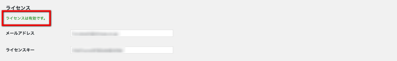 ライセンスキー発行時と登録情報に相違がなければ「ライセンスは有効です」の文字列が表示されます。