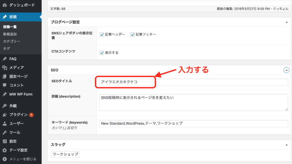 こちらの作業は、新規投稿時に行うことを推奨します。既存の投稿からタイトル変更しても、実際に変更されない事が多いです。