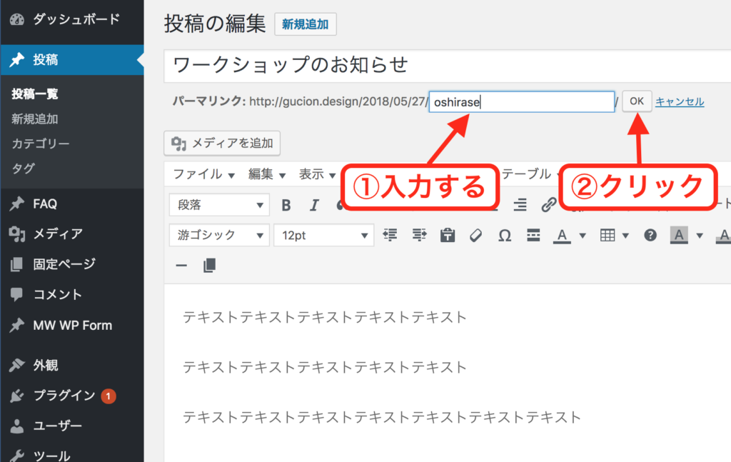 - 投稿の長いURLを変えるには、パーマリンクを変える