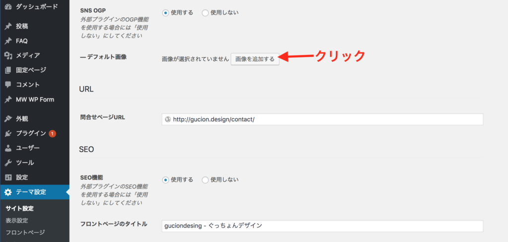 WordPress管理画面>テーマ設定>サイト設定>SEO
